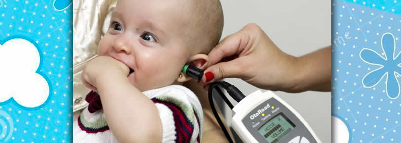 Esse exame consiste na colocação de um fone acoplado a um computador na orelha do bebê que emite sons de fraca intensidade e recolhe as respostas que a orelha interna do bebê produz.