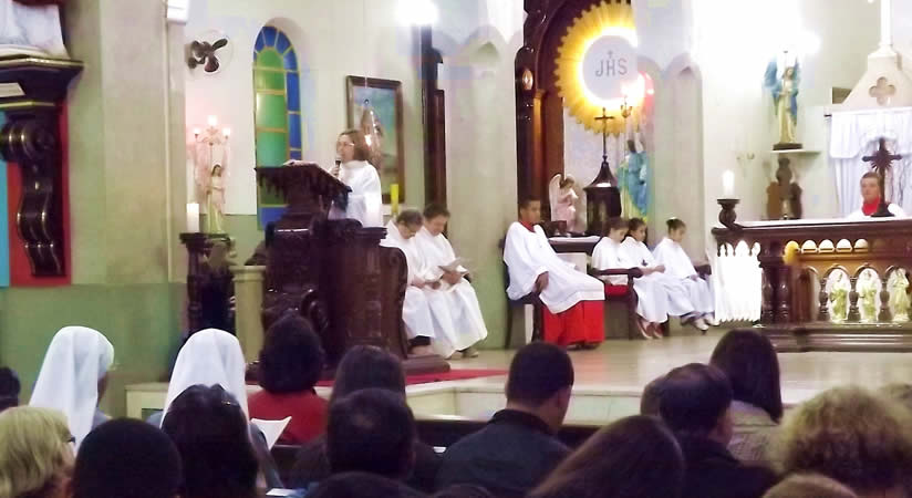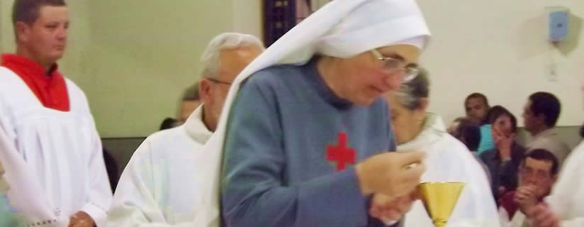 No momento da comunhão as irmãs subiram ao altar e puderam comungar as duas espécies, o pão e o vinho.