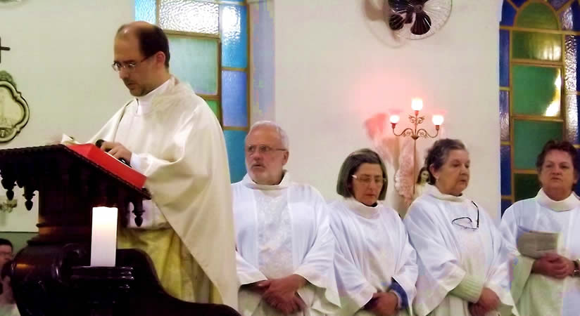 Ao final da cerimônia religiosa, padre Enderson chamou para frente do altar as Irmãs Filhas de São Camilo e os funcionários do Hospital Dr. Cândido Junqueira para receberem parabéns pela data especial e também a benção final.