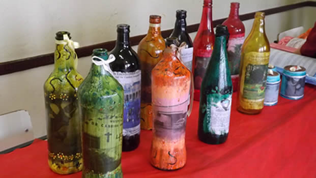 Eles também transformaram a história do Hospital em arte. Fizeram artesanato com telhas, garrafas e latas de alumínio, utilizando imagens antigas e atuais da instituição de saúde.