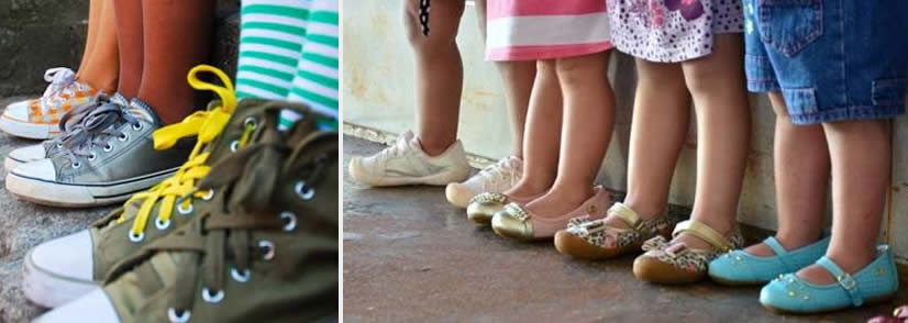 Acima dos 18 meses, os calçados podem ser mais rasos, já que a criança está mais firme. Na enorme variedade de calçados disponíveis, escolha sempre calçados flexíveis e bem ventilados, que tenham espaço suficiente para acomodar os dedos (pelo menos um centímetro entre os dedos e a ponta do calçado) e acolchoamento para os calcanhares.