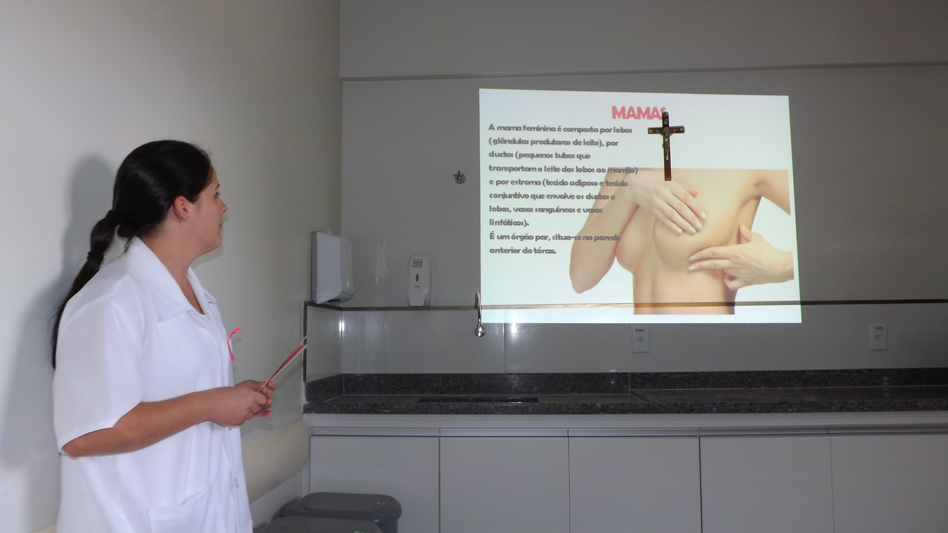 A primeira ministrada pela enfermeira Patrícia destacou a importância de se prevenir contra o câncer de mama, através da realização constante do autoexame e a partir dos 40 anos da mamografia.